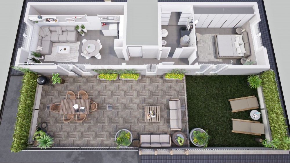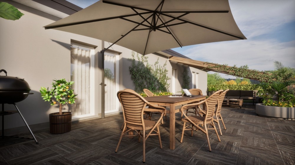La caratteristica distintiva di questo bilocale di 70 metri quadri è la presenza di un ampio terrazzo di 90 metri quadri che offre una vista panoramica del paesaggio circostante. L'immobile, completo di box auto, è stato progettato sfruttando un design moderno e presenta finiture di alta qualità per offrire il massimo comfort e benessere possibile.