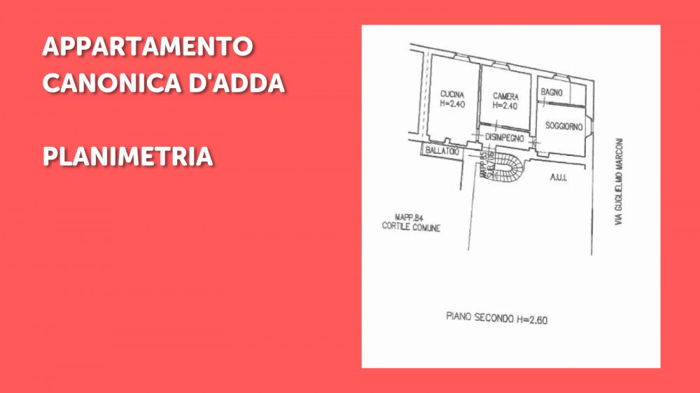 L’immobile si trova all’interno di una corte ristrutturata e ben tenuta, in centro paese, dove sono presenti il Comune e tutti i primari servizi e infrastrutture. I lavori di ristrutturazione sono stati eseguiti nel 1996.