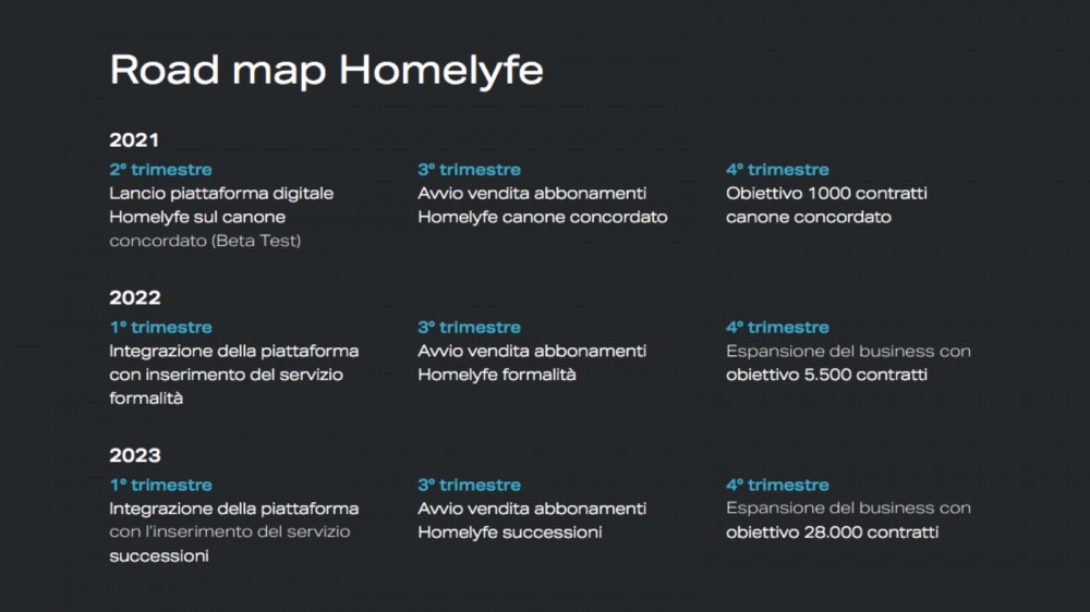 In generale, il segmento di business cui si rivolge HOMELYFE, ovvero quello della consulenza online attraverso la standardizzazione di processi ripetitivi, è in fortissima crescita. Già da tempo si avverte infatti la necessità di digitalizzare, sia per poter offrire servizi sempre più qualificati e veloci, sia per offrire servizi integrati in un unico luogo, virtuali e a costi sensibilmente ridotti.